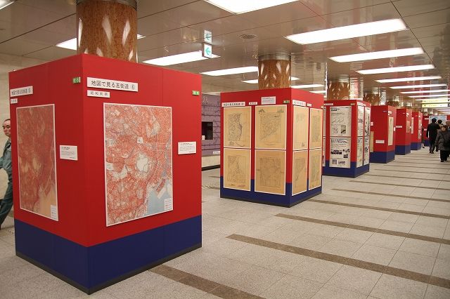 会場は東京地下鉄メトロ連絡通路という公共空間で開催しておりショッピング、お仕事がえりでも間に合いますのでご来場をお待ちしています。この地図展をご覧になって頂くと明日からちがった日本橋の風情が見えてくるかもしれません。